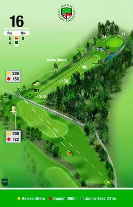 Ein fast 90 Grad Dogleg nach rechts. Der Abschlag ist hier sehr wichtig, um danach Richtung Grün spielen zu können. Eine gute Entscheidung ist dann, einen geraden Schlag vor das Wasser zu spielen. Ein guter Annäherungsschlag kann zum Birdie führen.